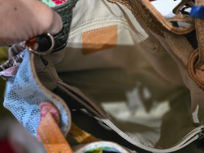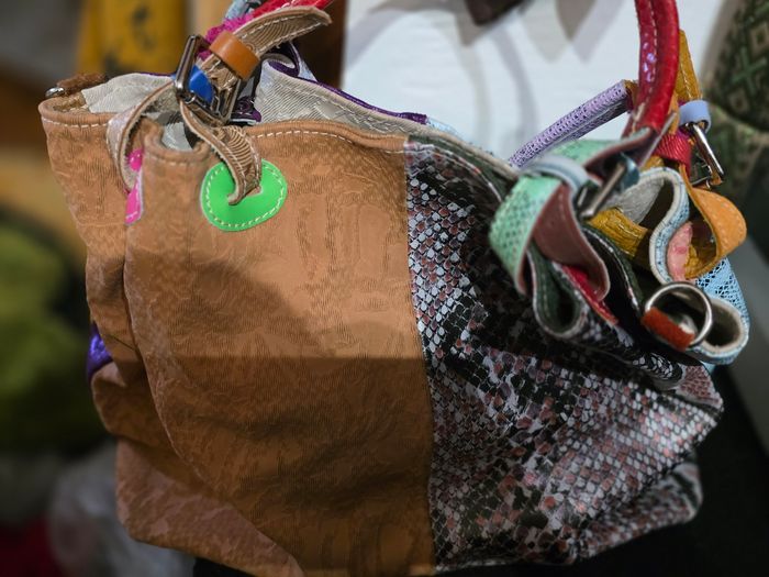 Sac très original fabriqué sur mesure avec des pièces de cuirs différentes
