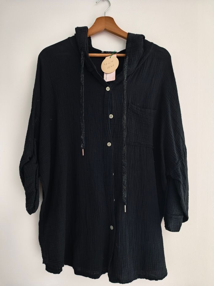 Chemise en gaze de coton avec capuche Taille unique 42-48 🚨Promo au lieu de 28€90
