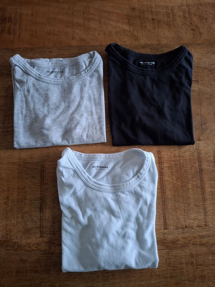 Vends lot de 3 maillots de corps de marque Vert Baudet en taille 6 ans en très bon état 1 blanc, 1 noir et 1 gris