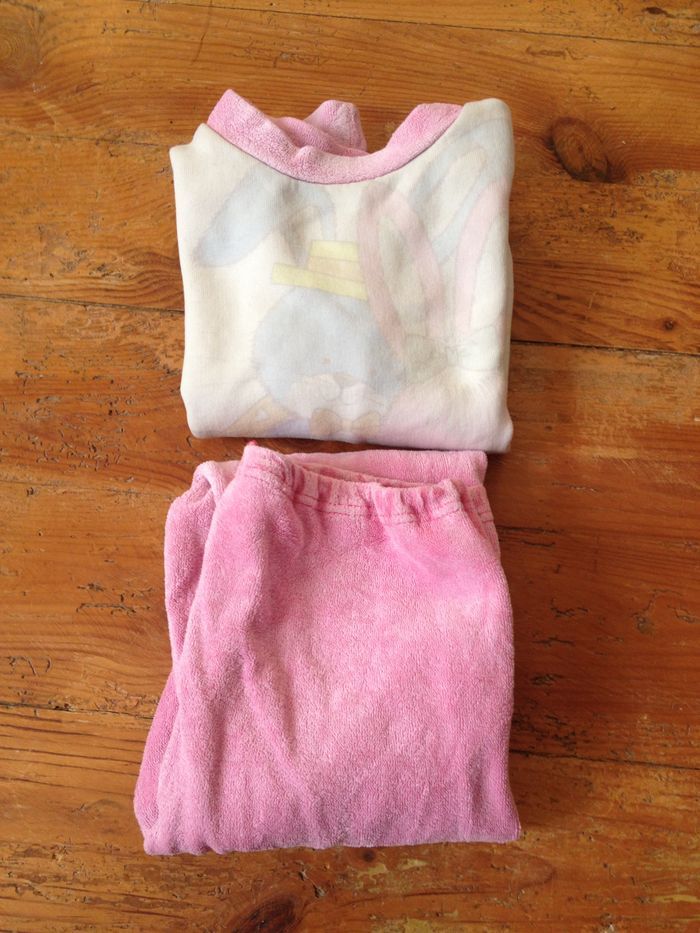 ~~~~~~~~~~~~ 📌 Avant de valider l'achat, merci de prendre connaissance des informations ci-dessous. ~~~~~~~~~~~~ Je ne connais pas l'âge, l'IA l'estime à du 2 ans. 𝐌𝐚𝐭𝐢𝐞̀𝐫𝐞 : étiquette manquante. 𝐓𝐚𝐢𝐥𝐥𝐞 : étiquette manquante. ♻️ 𝐄𝐭𝐚𝐭 : la couleur a terni, le pull a des taches, l'élastique du pantalon est détendu. - Peut servir pour finir de l'user ou faire du recyclage créatif. 📷 Bien 𝐯𝐢𝐬𝐮𝐚𝐥𝐢𝐬𝐞𝐫 l’ensemble des 𝐩𝐡𝐨𝐭𝐨𝐬 : elles font partie intégrante du descriptif. ✉️ Pour toute question complémentaire, contactez-moi. 💬 Réponse garantie dès que possible. ༻~~~~◕⊰ 𝐂𝐨𝐧𝐜𝐞𝐫𝐧𝐚𝐧𝐭 𝐥𝐞 𝐜𝐨𝐥𝐢𝐬 ⊱◕~~~~༺ 🔁 Je ne fais pas de retour ni de remboursement. ✨ Article nettoyé dans la mesure du possible. Après réception, vous pourrez appliquer vos soins complémentaires. 📭 Expédition uniquement via Mondial Relay. ⚠️ Le 𝐝𝐞́𝐩𝐨̂𝐭 du colis 𝐩𝐞𝐮𝐭 𝐩𝐫𝐞𝐧𝐝𝐫𝐞 𝐮𝐧 𝐩𝐞𝐮 𝐝𝐞 𝐭𝐞𝐦𝐩𝐬, ➺ variable selon mes disponibilités (jusqu'à 10 jours max). ⏳ Pour connaître la date exacte, me contacter. 🚚 Les conditions de livraison dépendent du transporteur. 📞 En cas de souci, les contacter directement. 📦 Une fois le colis arrivé, merci de le récupérer dans les délais indiqués. ༻~~~~◕⊰ 𝐌𝐨𝐧 𝐝𝐫𝐞𝐬𝐬𝐢𝐧𝐠 ⊱◕~~~~༺ 🔎 J'ai quelques articles de vêtements pour enfant ; dans les filtres de mon dressing sélectionnez ➺ "mode" ➺ "fille" ➺ tout ✨ Je mets régulièrement de nouveaux articles variés, à chiner en cliquant sur mon icône. 💸 Les réductions en lot sont activées. 👉 D’autres précisions sont indiquées sur mon profil. ~~~~~~~~~~~~