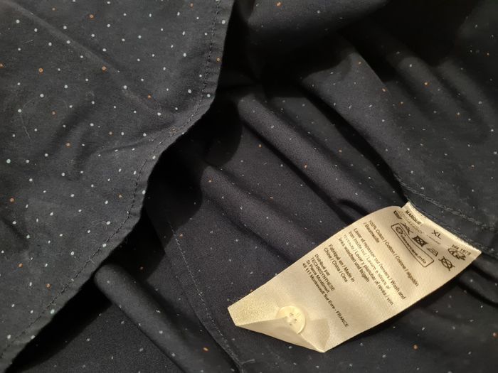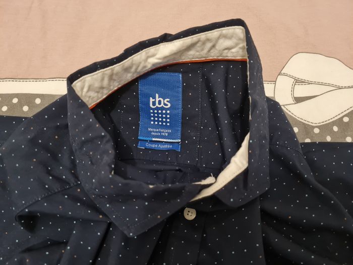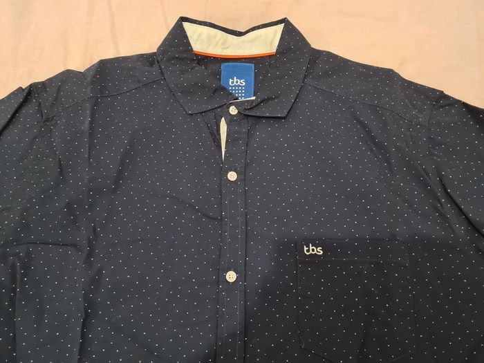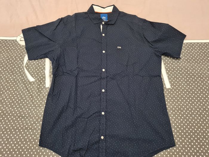 Chemise manches courtes bleu marine motifs points bleu ciel et rose Taille XL Marque TBS