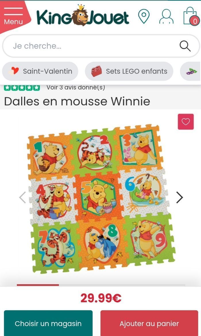 Vend 2 lots de dalles winnie donc 18 dalles au total . Parfaite etat . Ns ns en somme pas servi souvent .