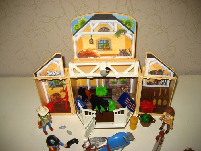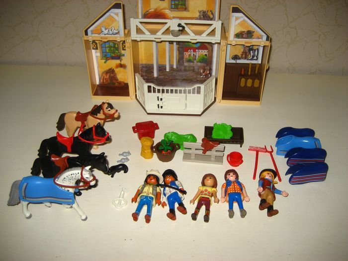 Lot playmobil coffret écurie transportable 5418 +chevaux et cavalières en très bon etat.Prix ferme