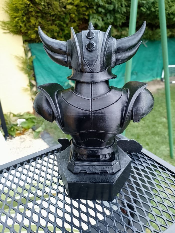 Figurine impression 3D Goldorak Figurine en relief Hauteur de la figurine 18 cm Hauteur du support 3 cm Hauteur figurine+ support 21 cm Couleur noire jaune Neuve Une très belle figurine avec de très belles finitions N'hésitez pas à demander si vous voulez des renseignements