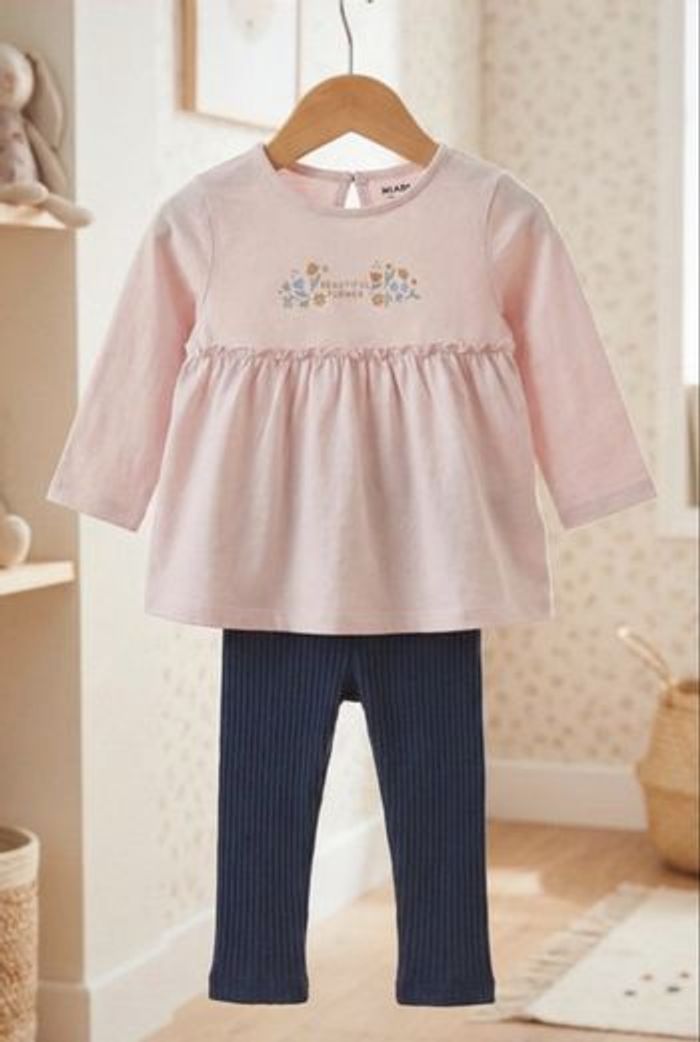 #bebefille #kiabi #kiabibaby #taille9mois #9mois #71cm #ensemblefille #tuniquebebe #leggingbebe #tresbonetat #vetementbebe #rosepoudre #bleumarine #broderie #tenuebebe #bebeconfortable