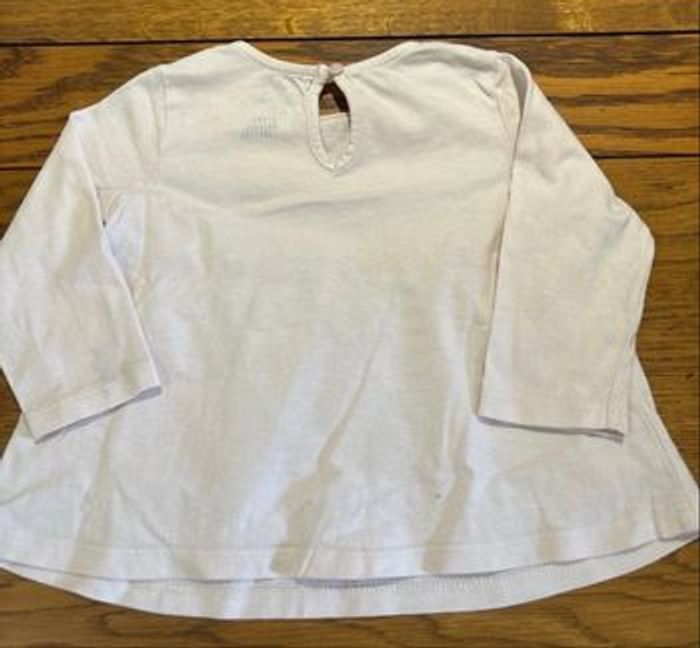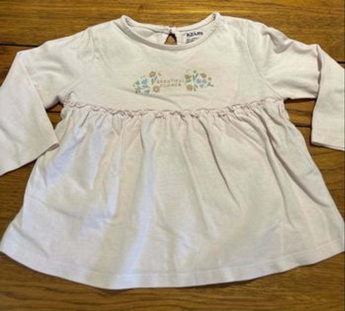• Le haut : Une jolie tunique / t-shirt à manches longues de couleur rose pâle. Coupe légèrement évasée sous la poitrine avec des petites fronces. Belle broderie florale "Beautiful Flower" sur le buste. Ouverture pratique à boutons-pression dans le dos pour faciliter l'habillage.