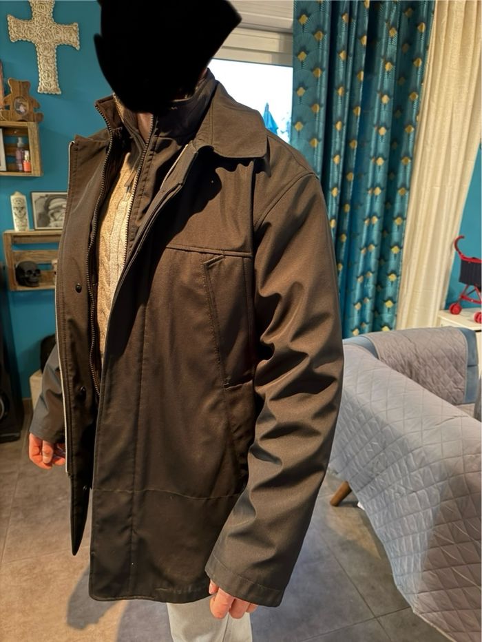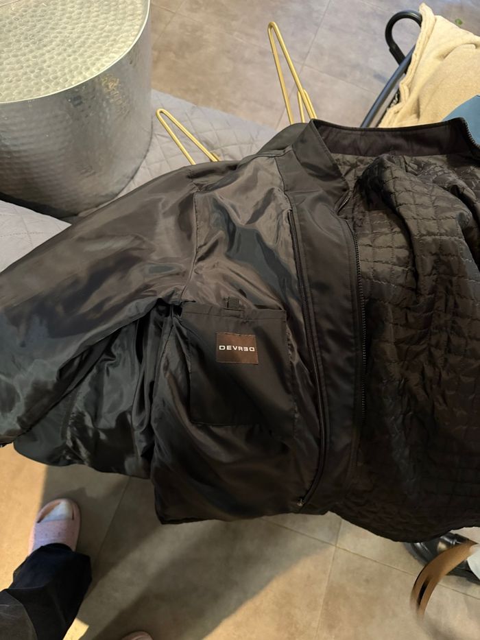 Double veste noir devred en très bon état Une veste + épaisse et dedans (peut s’élever avec le zip) une veste plus fine Taille L