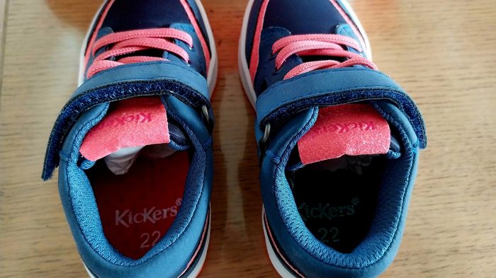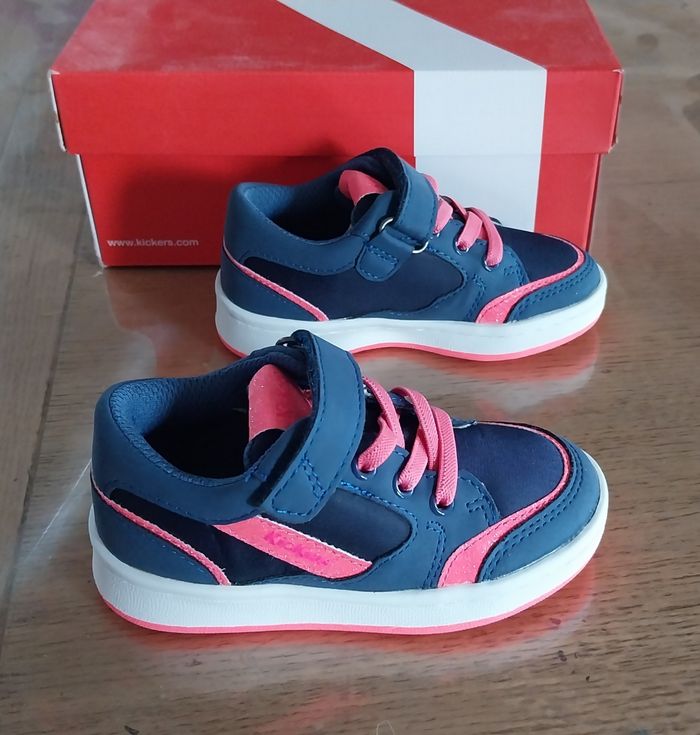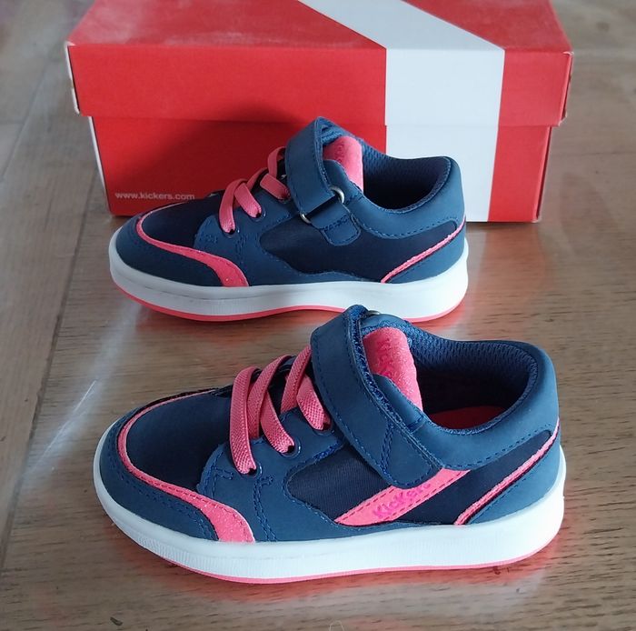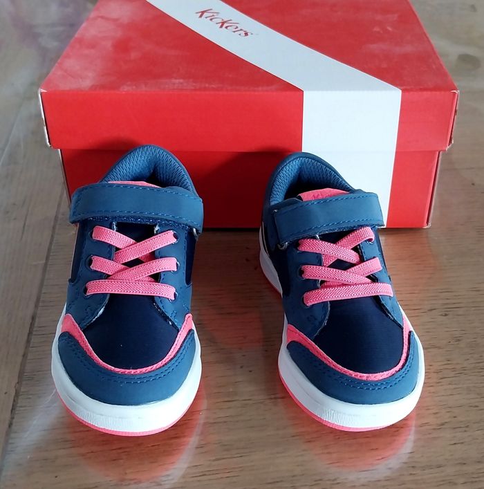 Baskets fille neuves jamais portées Lacets élastiques et fermeture scratch Pointure : 22 Marque : KICKERS