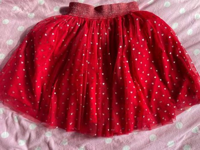 Jupe rouge et cœurs argentés Taille 6 ans