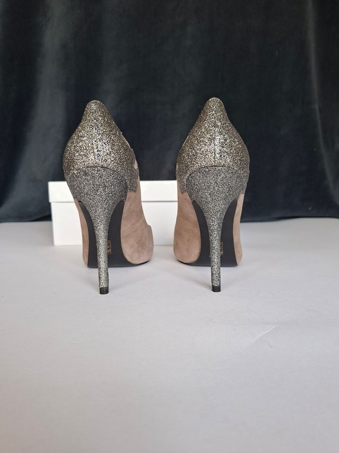 Détails raffinés : talon et contrefort arrière pailletés argentés