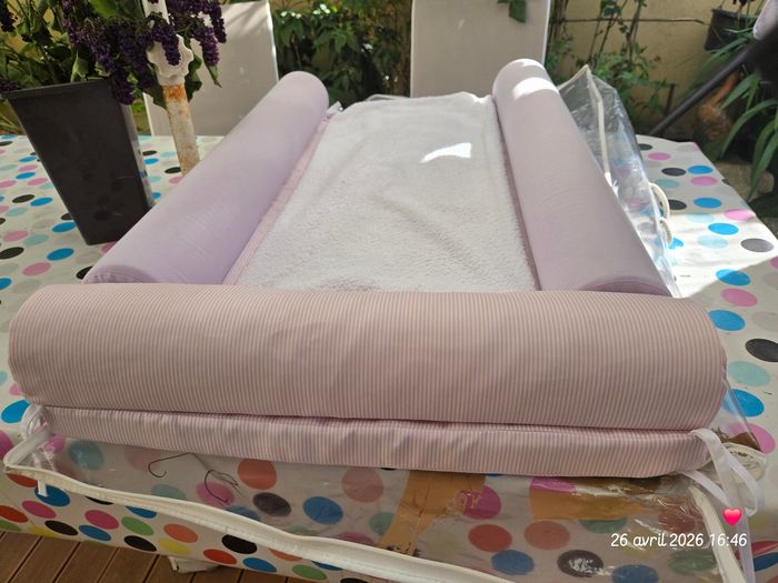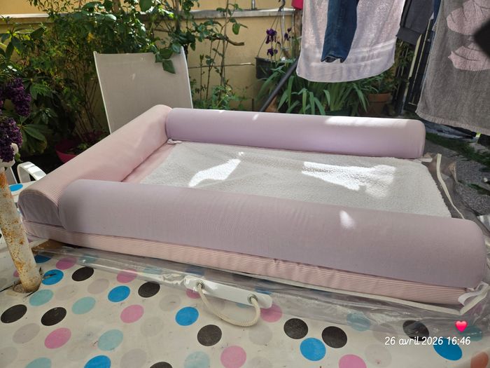 🍼 À vendre : Matelas / Nid bébé Alondra – 100 × 60 cm Marque Alondra, fabrication Espagne 🇪🇸. Composition : 100 % algodón (coton), très doux et respirant. Entretien : déhoussable, housse lavable en machine à 30°. Comme vous pouvez le voir sur la photo, il possède une fermeture éclair sur toute la longueur, ce qui facilite le retrait de la housse. Dimensions : 100 cm × 60 cm (grand format). État : Très bon état, il a servi pour mes jumeaux. À noter : un tout petit trou discret sur le boudin droit, tout en bas — n’altère pas l’utilisation. Idéal pour installer bébé confortablement et en sécurité. 💶 Prix : 80€ Disponible immédiatement. N’hésitez pas à me contacter pour plus d’informations ou photos supplémentaires.