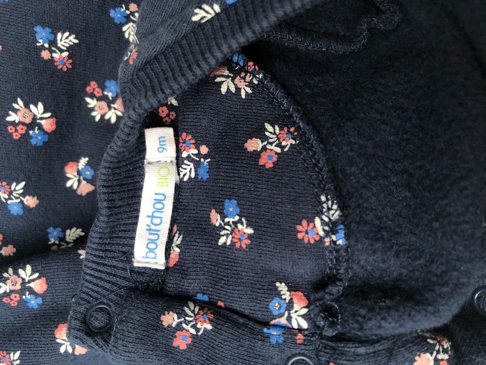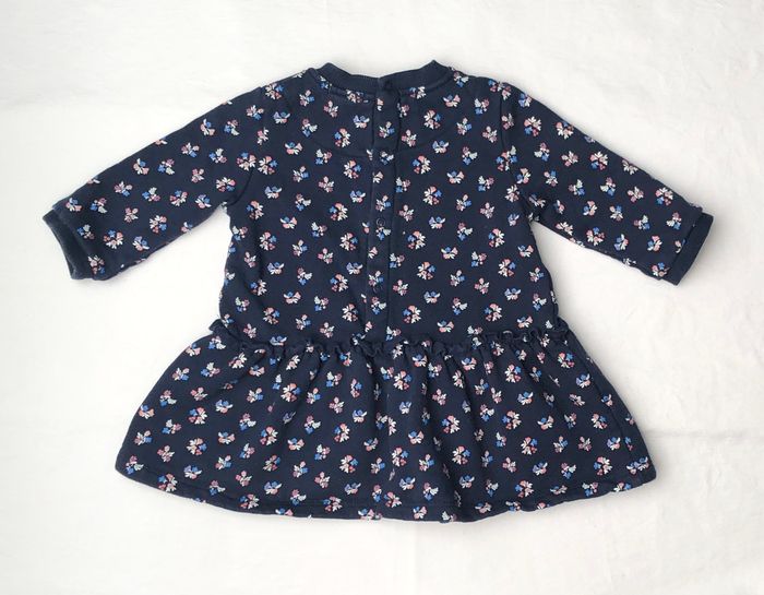 Robe Bout’chou, Taille 9 mois/ 71 cm, Mi-saison/ hiver, Epaisse : en coton molletonné, matière sweat, Manches longues, Col rond. Jolie robe bleu marine, motifs petites fleurs bleus, roses et blanches. Patch/ écusson en forme d’oiseau sur l’avant. Ouverture par pressions dans le dos. En très bon état : sans trou ni tache. Non décolorée. 🌸 Vous aimez cet article ? N’oubliez pas de visiter le reste de mon dressing en filtrant les tailles.