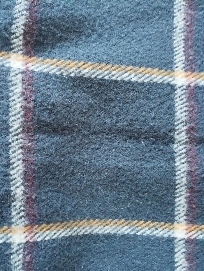 Écharpe homme de la marque Jules. Elle est bleu marine avec des lignes blanche, bordeau et jaune. Elle a des petites franges à chaque bout. Elle est en bon état malgré des bouloches.