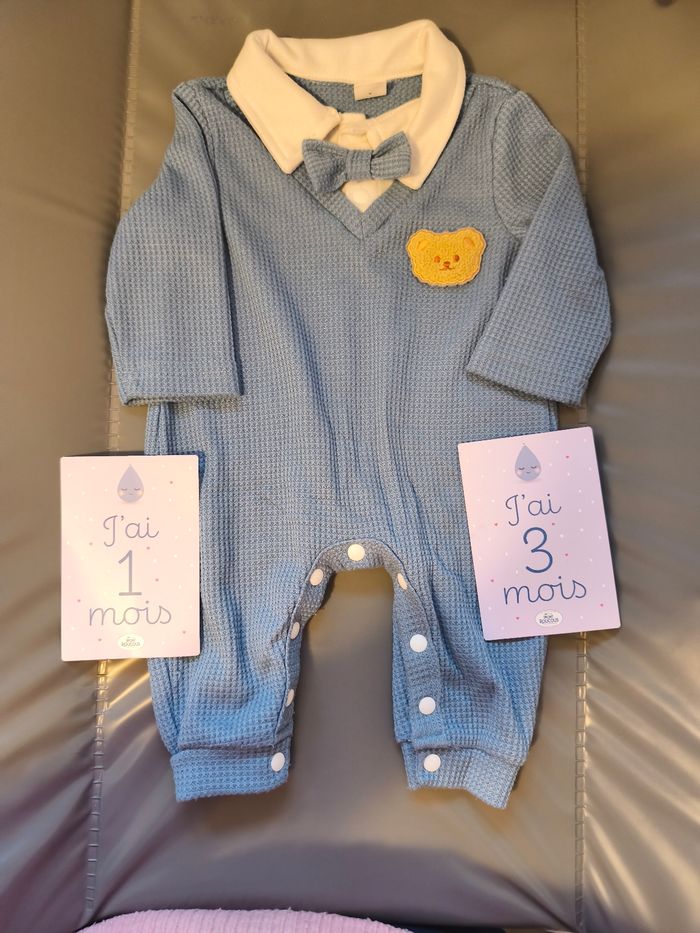 Barboteuse bébé garçon en excellent état taille 1 à 3 mois avec petit nœud intégré