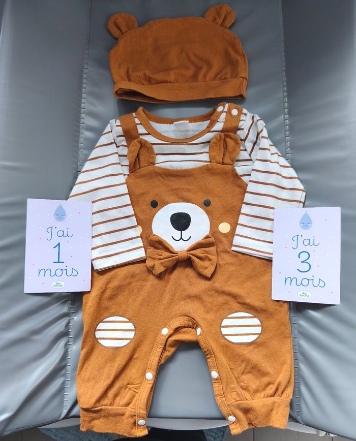 Ensemble bébé garçon comprenant la barboteuse et un bonnet en excellent état comme neuf taille 1 à 3 mois