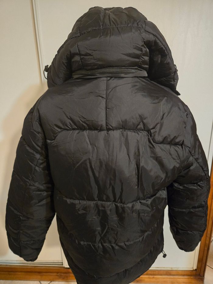 Doudoune chaude et légère Capuche amovible grace au zip 3 poches devant et 1 à l intérieur toutes avec zip Doublé zip devant Doudoune neuve c etait un cadeau mais malheureusement mauvaise taille et impossible à changer délai dépassé