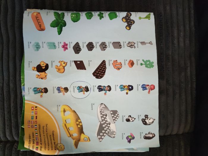 Bonjour vend LEGO DUPLO dans son carton qui n'est pas tout neuf sur la photo du livre il manque un personnage que j'ai entouré sinon toutes les autres pièces y sont n'hésitez pas si besoin de renseignements bonne journée