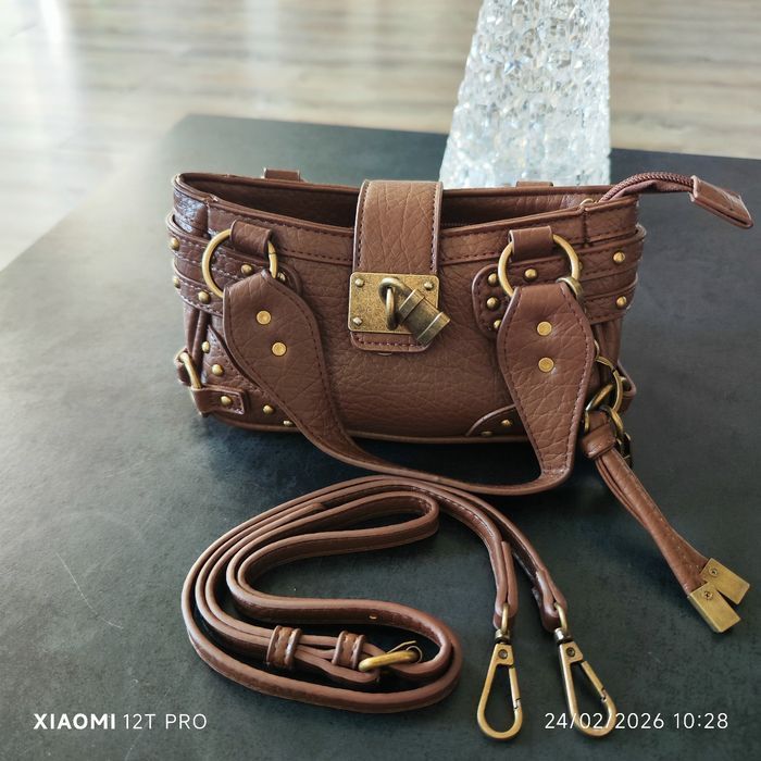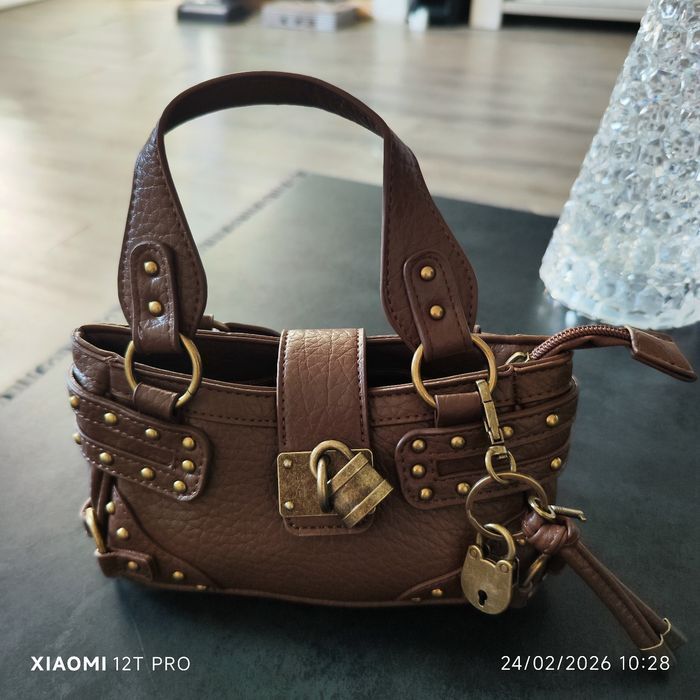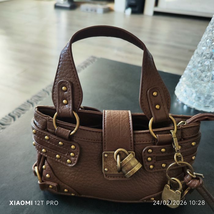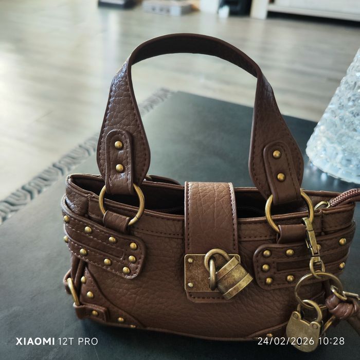 Superbe sac à main avec bandoulière bicolore marron