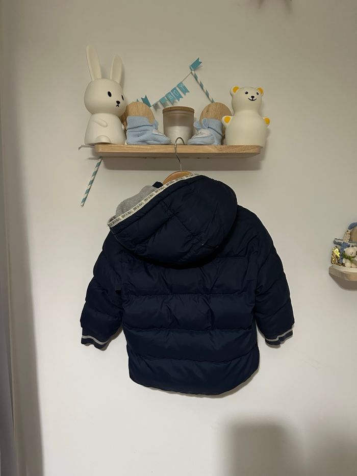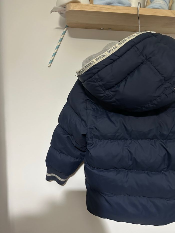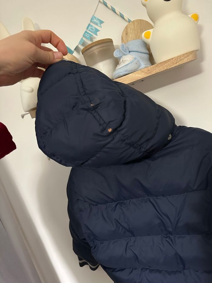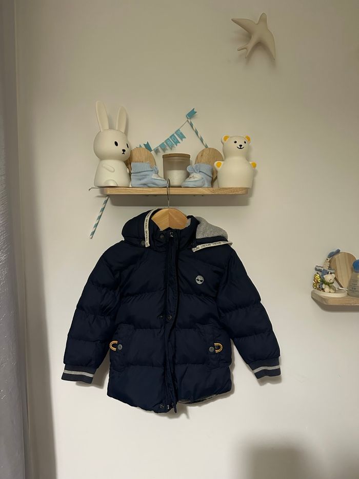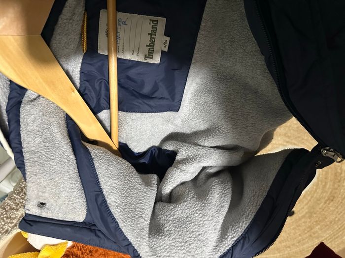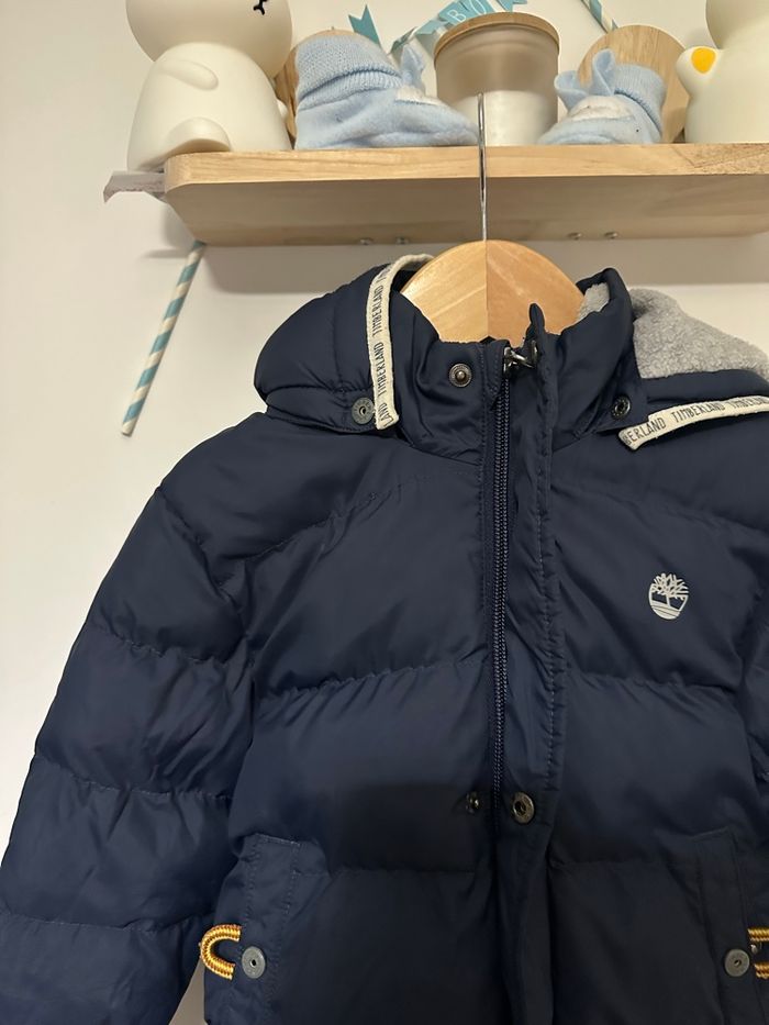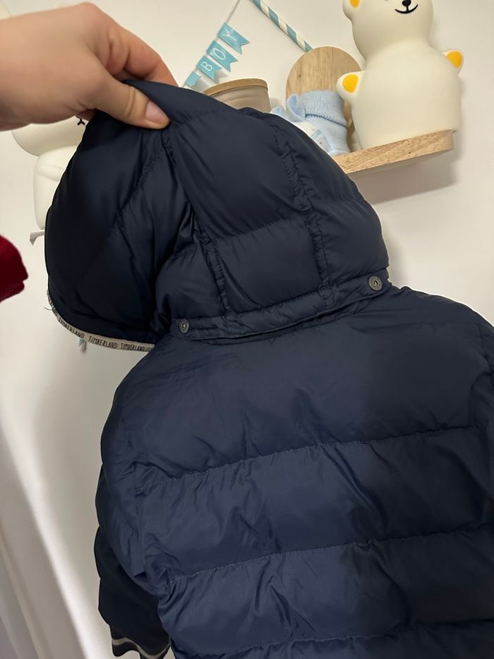 Doudoune Timberland en parfait état, taches au niveau de la capuche voir photos mais possibilité de détacher la capuche. Taille 2 ans 86cm prénom inscrit sur l’étiquette