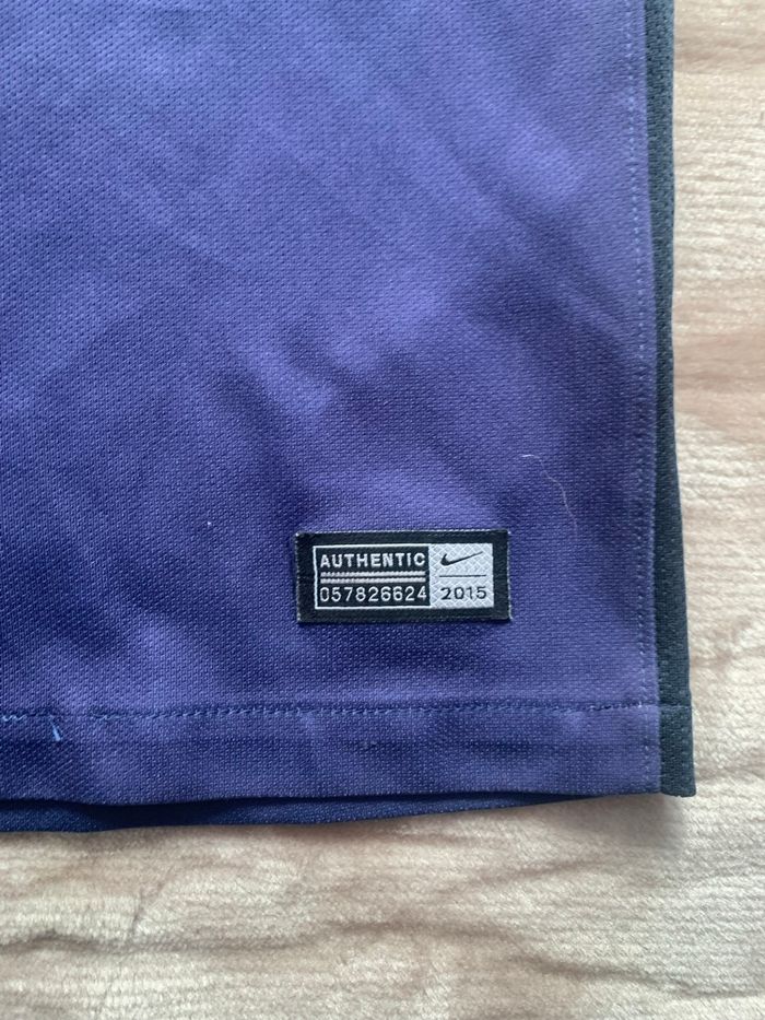 I sell this PSG Nike jersey from number 9 Cavani, a must for all Paris Saint-Germain supporters. Authentic jersey with the iconic colors of the club. Size XS in very good condition little worn - Universe: Man - Color: Blue - Player: Cavani - Number: 9 Year 2015 - Characteristics: Fly Emirates Sponsor, Central red band, PSG logo Fast and neat shipping Do not hesitate to contact me for more information or photos.