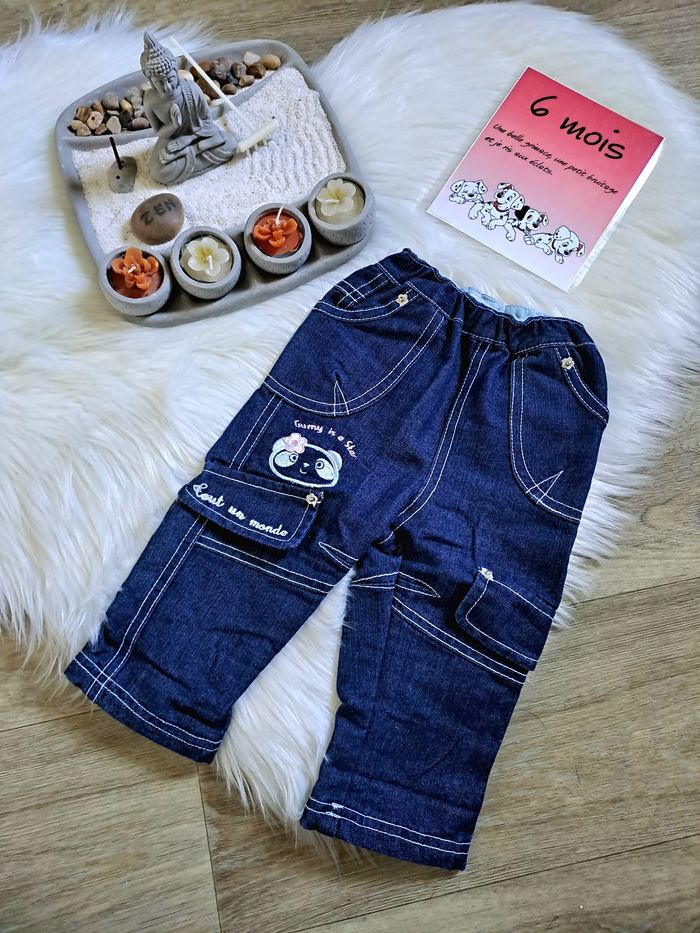 #6moisilyana 🍬 Jolie jean doublé en très bon état. Taille 6 mois. #pantalon #bleu#fille #6mois #jeandoublé