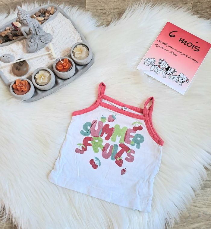#6moisilyana 🍬 Débardeur en très bon état. Taille 6 mois. #Débardeur #6mois #fille #blanc
