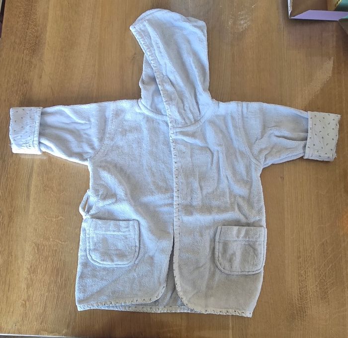 Peignoir Blanc gris 6 mois Marque Kimbaloo Manque la ceinture