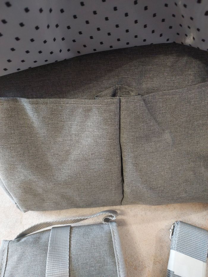 Lot composé d’un sac à langer, une chancelière et un coussin