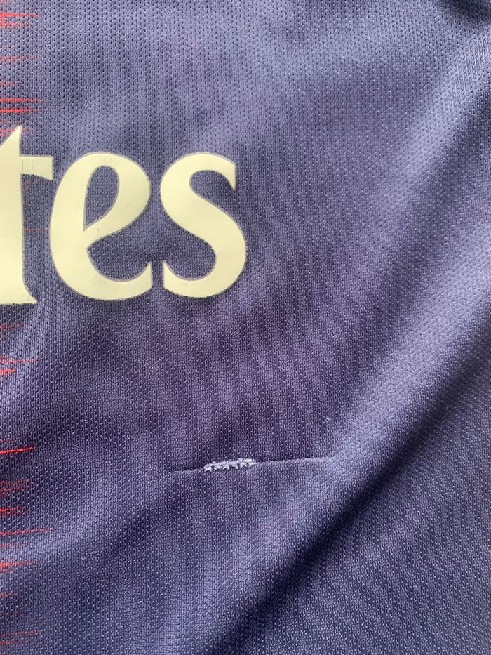 Je vends ce maillot de football Nike du Paris Saint-Germain aux couleurs emblématiques bleu et rouge. Un maillot authentique à l'effigie de Neymar, parfait pour les supporters du PSG ou les collectionneurs de maillots de légende. En très bon état malgré un accroc peu porté - Type de produit : Maillot de football - Marque : Nike - Univers : Homme - Taille : XS - Couleur : Bleu marine avec bandes rouges - Caractéristiques : Maillot Neymar PSG, numéro 10, logo Ooredoo, logo PSG brodé en très bon état N'hésitez pas à me contacter pour plus d'informations ou de photos.