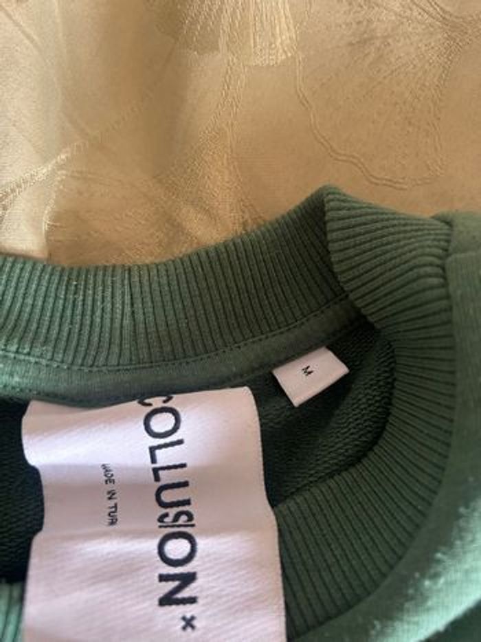 Sweat vert forêt avec inscription rose “Collusion” effet rétro 🌸 Coupe légèrement oversize, manches longues et matière douce confortable. Parfait pour un look casual, cosy ou streetwear. Taille M État niquel Mixte