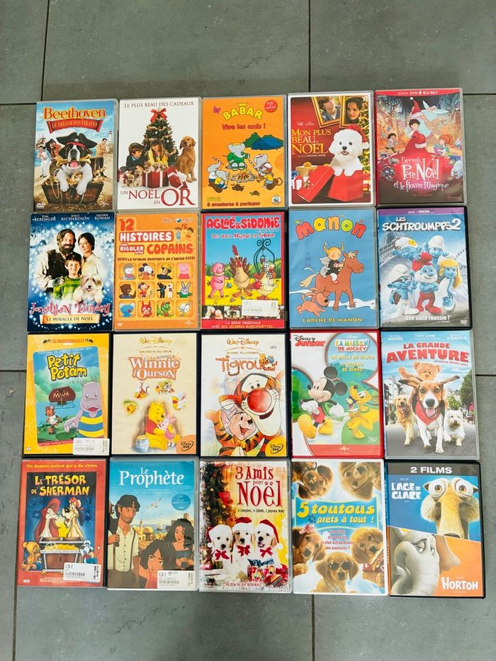 Lot de dvd film et dessins animés pour enfant Beethoven, le trésor des pirates Le plus beau des cadeaux un Noël en or Babar, vive les amis Mon plus beau noël L’apprenti Père Noël, et le flocon magique Le miracle de Noël D’histoires pour rigoler entre copains Aglaé et Sidonie L’arche de Manon Les Schtroumpfs 2 Petit Potam Winnie l’ourson, Disney Les aventures de Tigrou Disney La maison de Mickey Disney La grande aventure Le trésor de Sherman Le prophète Trois Amis pour Noël. Cinq Toutous prêts à tout. L’Age de glace et Horton Tous fonctionnent : ont été retestés avant la mise en vente Tous en très bon état voire neufs Seuls les boîtiers peuvent présentés quelques défauts Envoi soigné 1€ le dvd (sauf Disney à 2€) ou prix indiqué pour le lot entier #stefetjuju51divers #stefetjuju51video maison non fumeurs bien d’autres choses dans mon dressing de nouveaux articles très régulièrement nombreux # dans mon profil pour faciliter vos recherches merci pour votre visite et belle journée ☺️ #lot #dvd #enfant #dessinanime #film