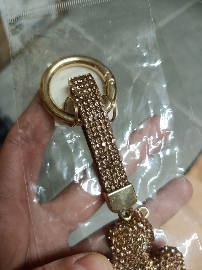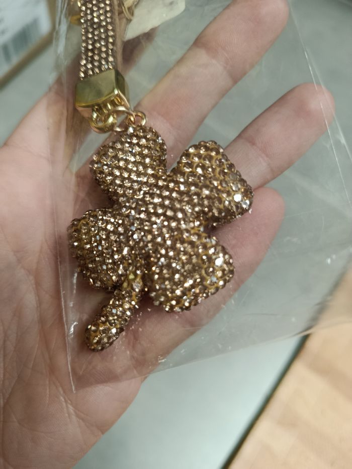 Porte clé trèfle brillant or Neuf
