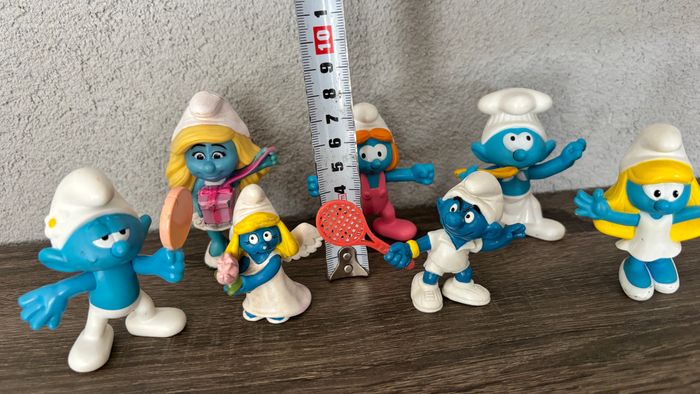 Lot de figurines Les Schtroumpfs mesure en photo avec le mètre jouets d'occasion en bon état avec quelques imperfections Voir TOUTES les photos