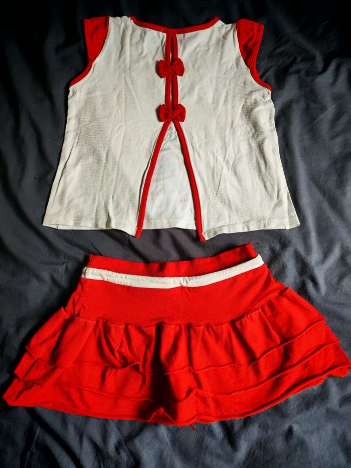 Ensemble 2 pièces jupe short + marcel ouvert à l'arrière, Portugal, taille 10 ans, couleurs rouge et blanc, en bon état général