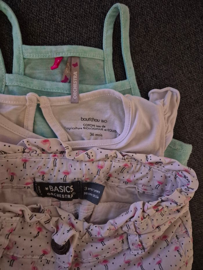Ensemble 3 ans Short orchestra (la taille se regle) / tee shirt boutchou / debardeur orchestra Tres bon etat