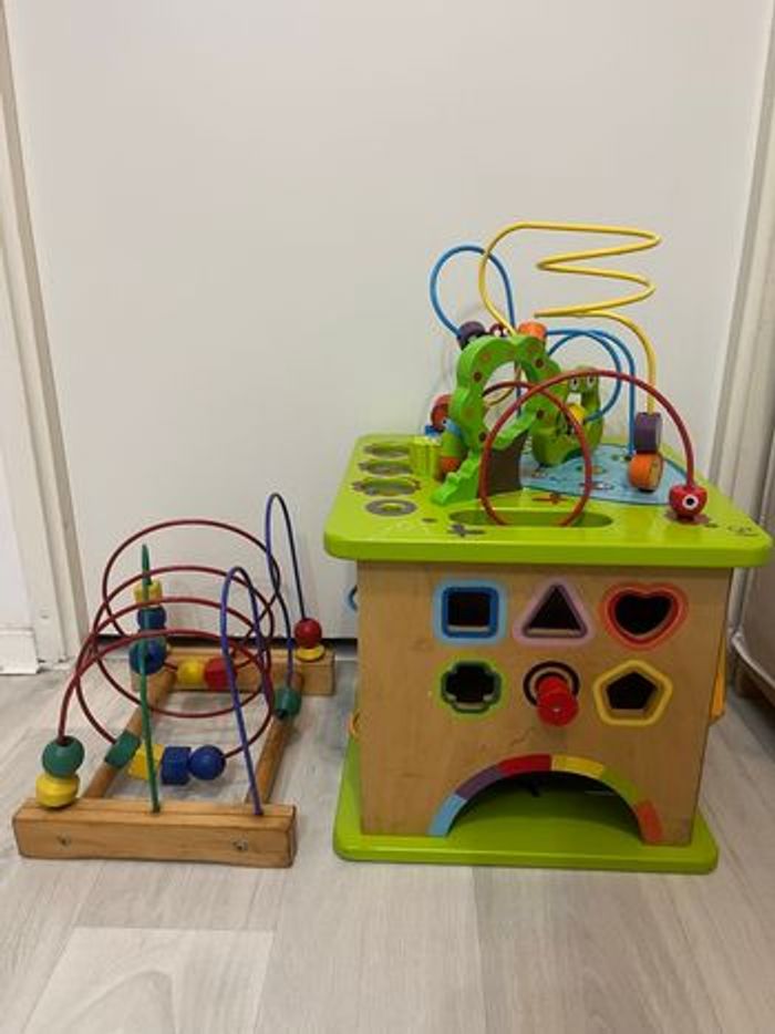 Lot comprenant : ✔️ Grand cube d’activités Hape (circuit de perles, formes à encastrer, jeux de manipulation) ✔️ Petit boulier / labyrinthe de perles IKEA À savoir : • Peinture légèrement écaillée par endroits sur le cube (discret) • Il manque quelques formes à encastrer • Il manque probablement quelques petites balles • Traces d’usage normales Reste tout à fait fonctionnel 👍 📍 Remise en main propre à Tourcoing 🚫 Pas d’envoi