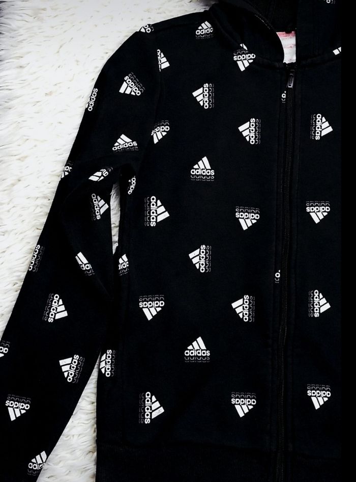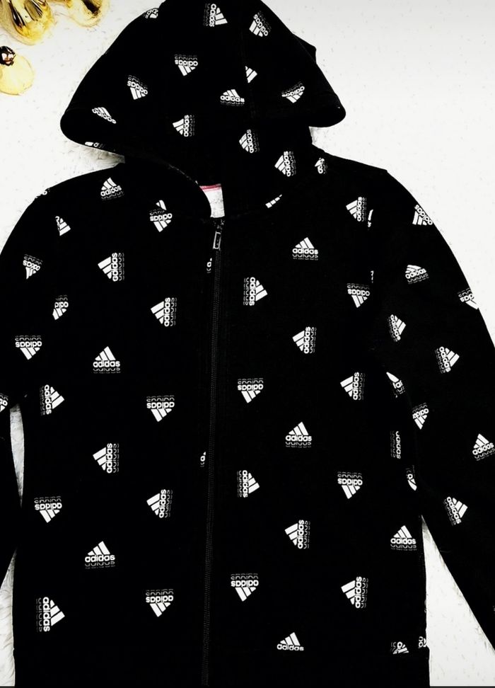 Sweat zippé à capuche noir et blanc Fille taille 11/12 ans marque Adidas 🦜 - photo numéro 6