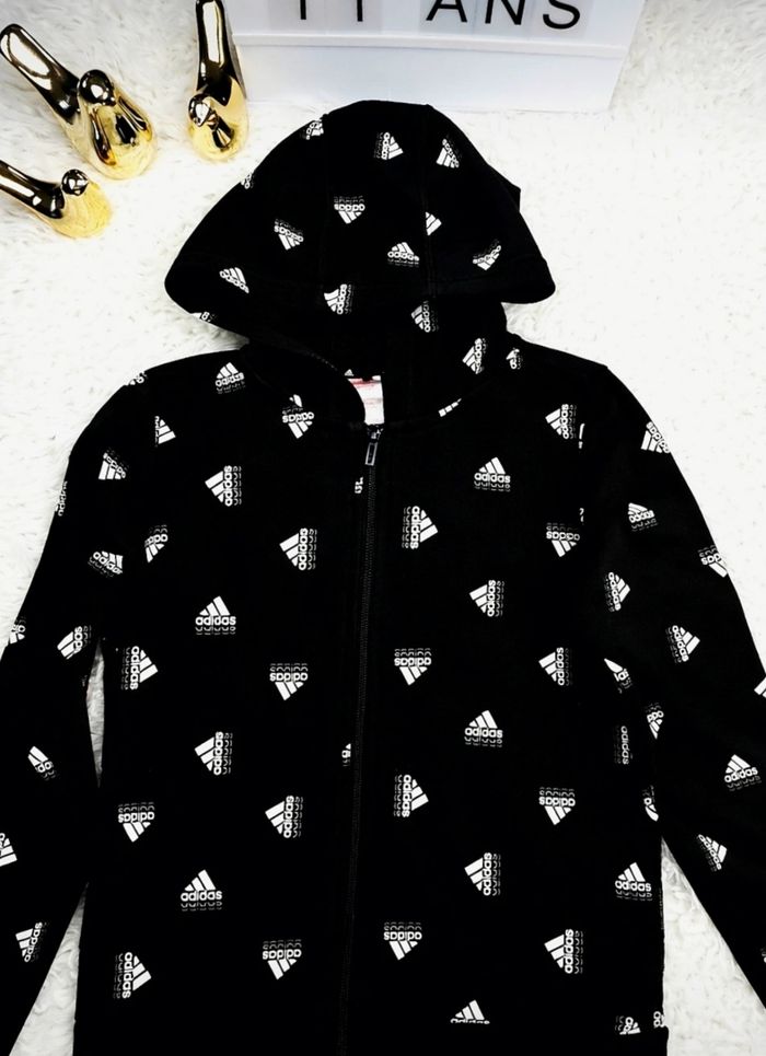 Sweat zippé à capuche noir et blanc Fille taille 11/12 ans marque Adidas 🦜 - photo numéro 7