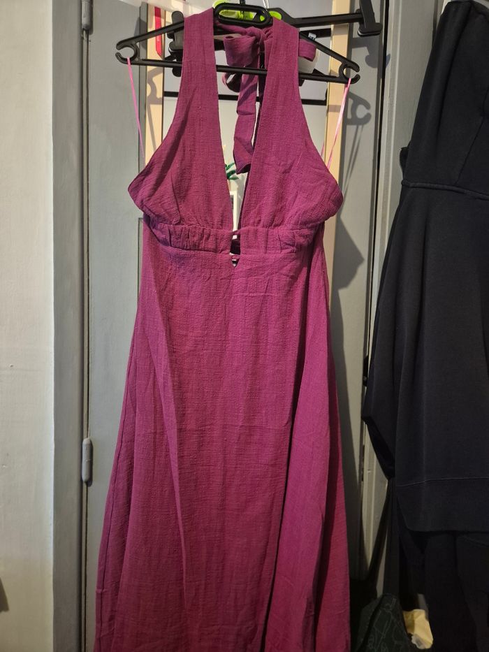 Robe prune longue de fleur et compagnie Ne me va pas en terme de taille, c'est pour cela que ie la vend Elle est magnifique. Nouée au courant, ouverte entre la poitrinaire, dos nue Matière gaz de coton Doublée jusqu'en bas