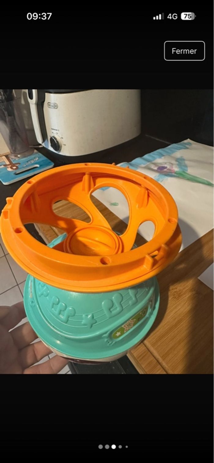 Balle qui tourne ou peux rester fixe peux se transformer en tambour sonore et lumineux