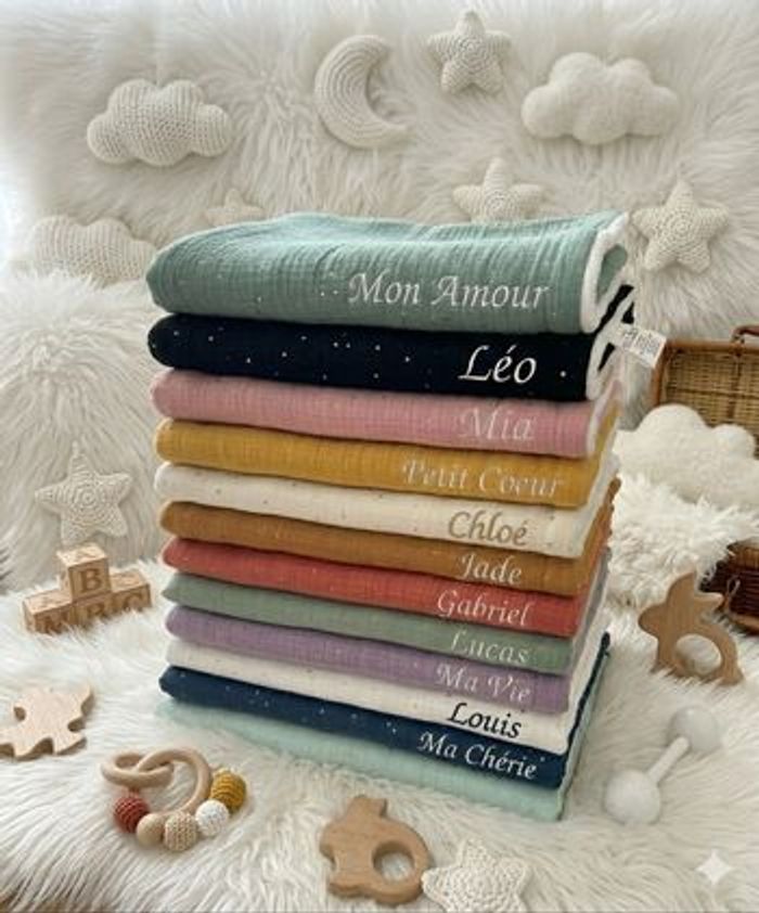 Couverture double gaze personnalisée brodée  - photo numéro 1
