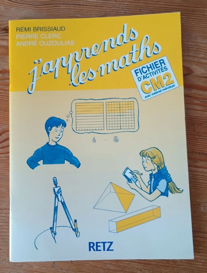 Je vends un fichier d'exercice de maths CM2 "J'apprends les maths" - un manuel scolaire idéal pour accompagner les apprentissages mathématiques des enfants de cours moyen. - Titre : J'apprends les maths - Fichier d'activités CM2 - Auteurs : Rémi Brissiaud, Pierre Clerc, André Ouzoulias - Genre : Manuel scolaire - Éditeur : Retz - Langue : Français État neuf (aucun exercice fait). N'hésitez pas à me contacter pour plus d'informations ou pour convenir d'un rendez-vous.