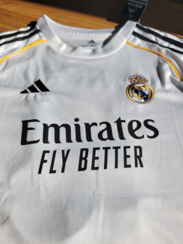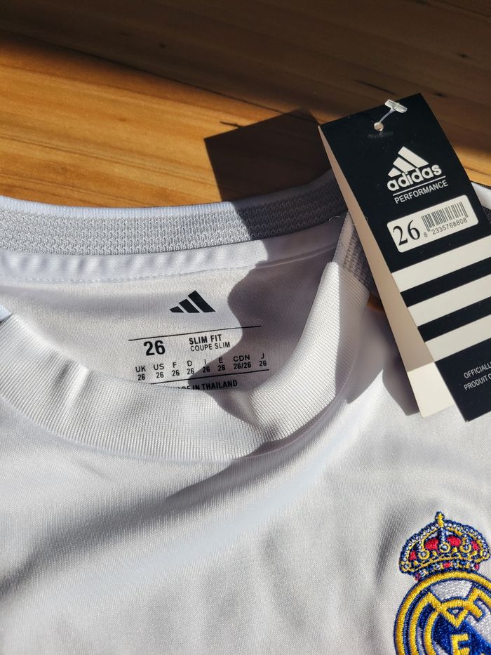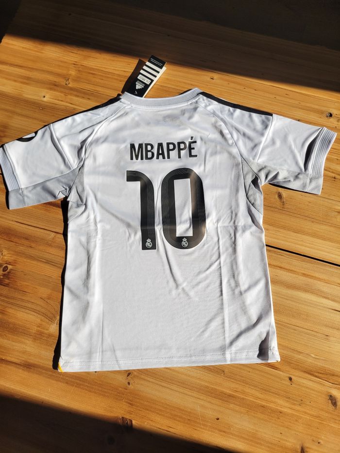 Ensemble Adidas du Real Madrid Maillot et short de Kylian Mbappé Taille 12 ans État neuf