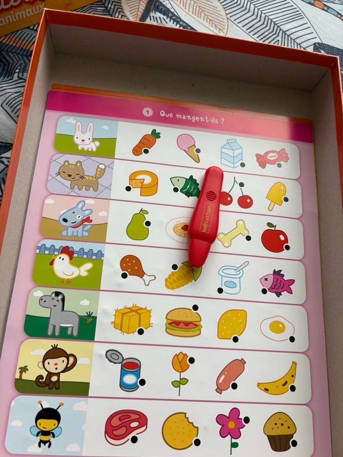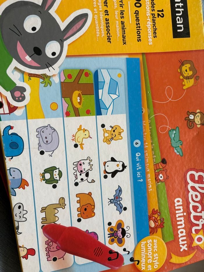 #jeueducatif pour maternelle autour du vocabulaire. Avec un stylo qui s’allume quand la réponse est bonne. Au moment de l’écriture de cette annonce, la pile du style fonctionne encore mais elle ne sera pas changée pour la vente. #reductionsurleslots