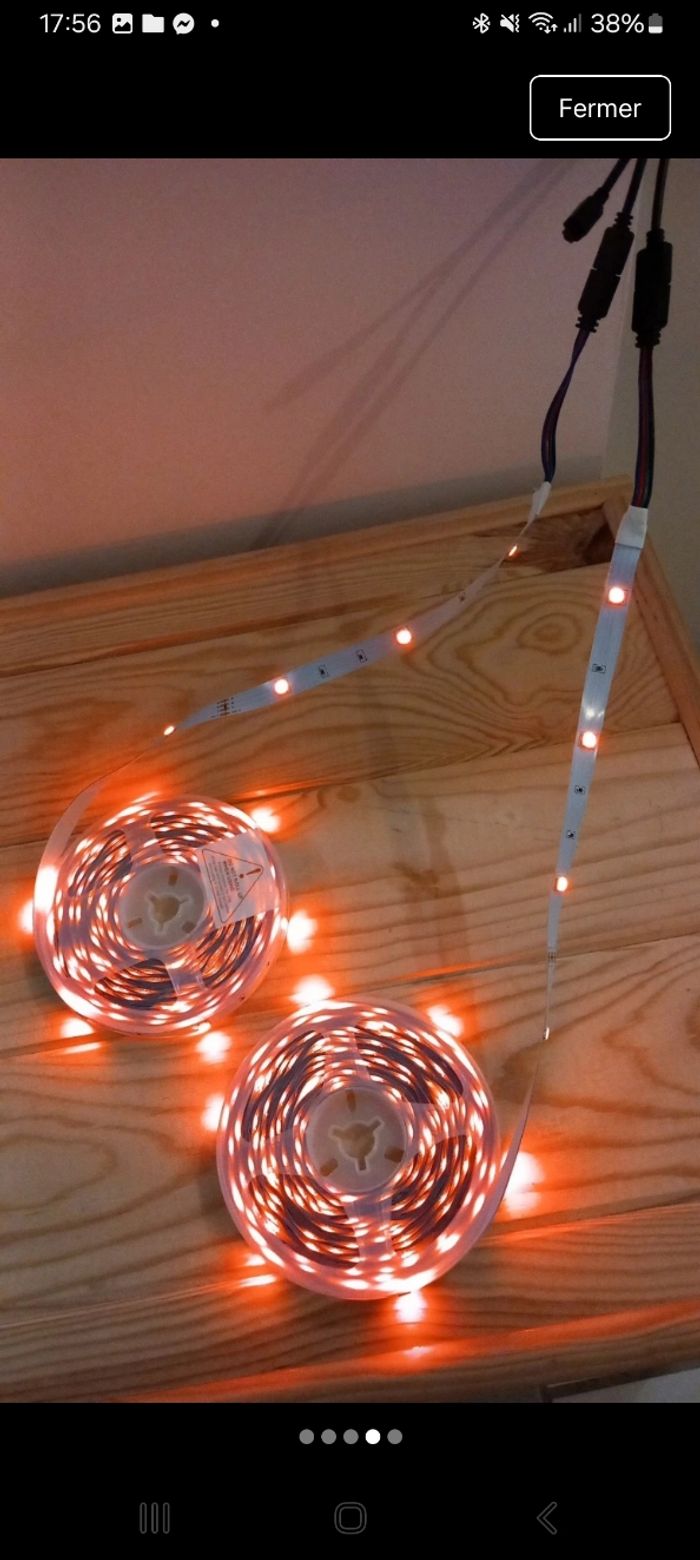 Double ruban Multicolore Plusieurs mode dispo (couleurs ; musoque/volume ; ...) Notice + câble + télécommande Jamais utilisé