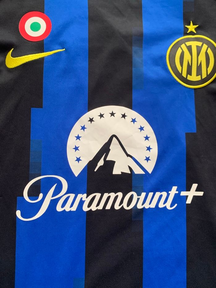 Je vends ce maillot de l'Inter Milan sUn maillot aux couleurs emblématiques du club, parfait pour les supporters ou les amateurs de football. - Type de produit : Maillot de football - Marque : Nike - Club : Inter Milan - Univers : Homme - Taille : M Année 2023 - Couleur : Bleu et noir rayé - Caractéristiques : Logo Nike, écusson Inter Milan, sponsor Paramount+ Envoie rapide et soigné N'hésitez pas à me contacter pour plus d'informations ou de photos.