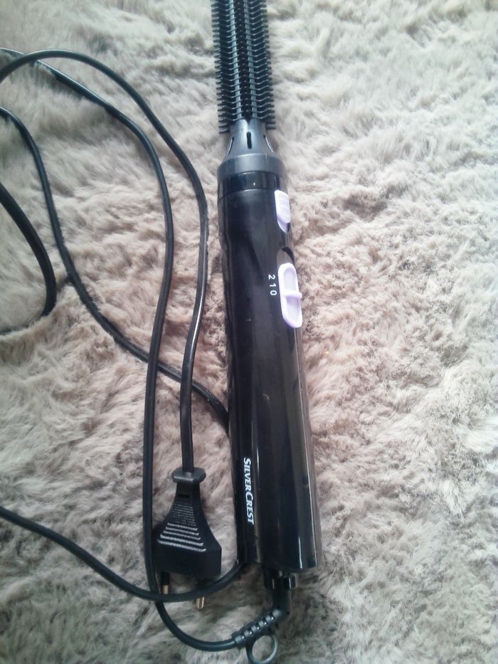 Brosse soufflante de la marque silvercrest avec embout rond fixe qui permet de faire des ondulations. Fonctionne parfaitement à très peu servie.