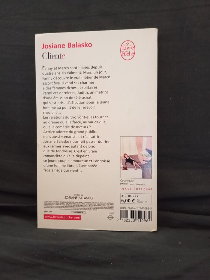 Je vends le roman "Clientèle" de Josiane Balasko, une histoire piquante et amusante qui ravira les amateurs de comédie littéraire. - Titre : Clientèle - Auteur : Josiane Balasko - Genre : Roman - Éditeur : Le Livre de Poche - Format : Poche - Langue : Français - ISBN : 978-2-253-11096-5 Bon état N'hésitez pas à me contacter pour plus d'informations ou pour convenir des modalités de remise.
