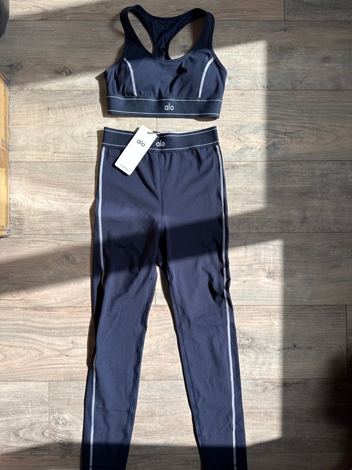 #AloYoga #EnsembleSport #YogaSet #MidnightBlue #TailleS #ActiveWear #YogaLove #GymOutfit #LuxeSport #NeufAvecEtiquette #FitnessFashion #AloSet