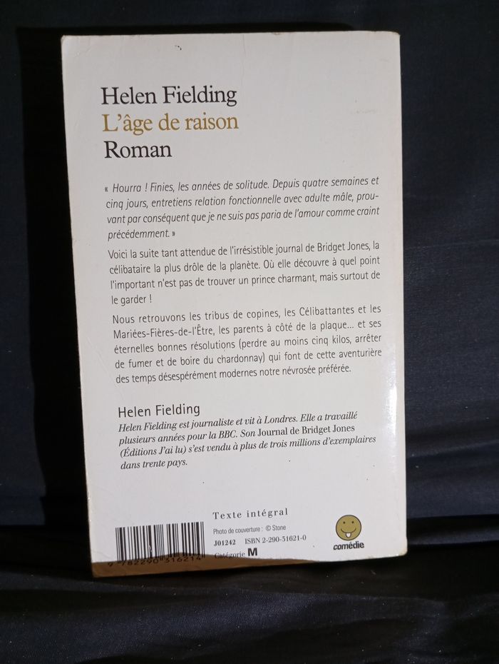 Je vends le roman "L'âge de raison" d'Helen Fielding, une suite hilarante au journal de Bridget Jones qui ravira les amateurs de comédie romantique. - Titre : L'âge de raison - Auteur : Helen Fielding - Genre : Roman - Éditeur : J'ai lu - Format : Poche - Langue : Français - ISBN : 2-290-31621-0 Bon état N'hésitez pas à me contacter pour plus d'informations ou pour convenir d'une visite.